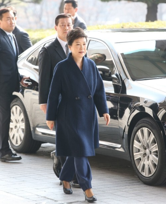 오늘 박근혜 그냥 아무 남색 코트 입은것도 아니래