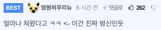 | 머니게임 출연중인 공혁준에게 악플 달리자 직접 답글 단 혁준상 (0) | 2021.05.09 |