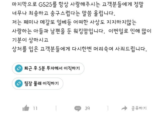 | GS 내부 직원들 현재 상황 (0) | 2021.05.09 |