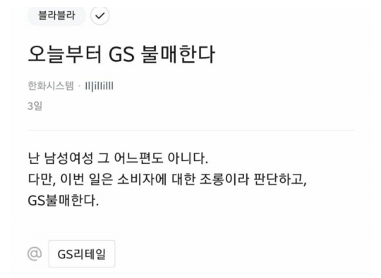 | GS사태로 한남들에게 화가난 언니들 대규모 불매 운동 시작 (0) | 2021.05.09 |