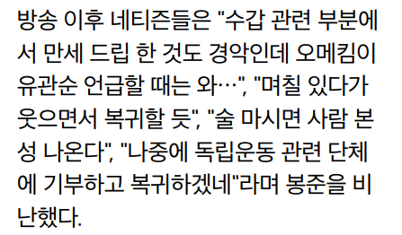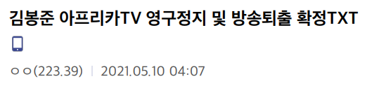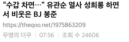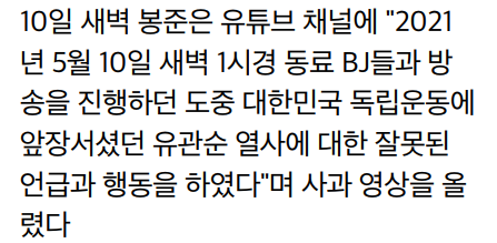 BJ봉준 술먹방 도중 유관순 열사 성희롱 발언으로 사과