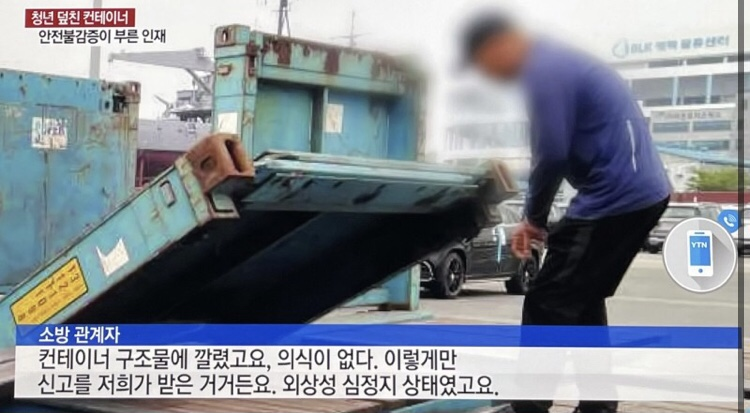 그때 다른 지게차 기사가 선호 씨를 보지 못하고 컨테이너 한쪽을 접자 컨테이너 진동으로 선호 씨가 있던 300kg 다른 쪽 컨테이너가 접혀버리는 사고가 났습니다. 원래 정상적인 컨테이너는 이런일이 없다고 합니다.