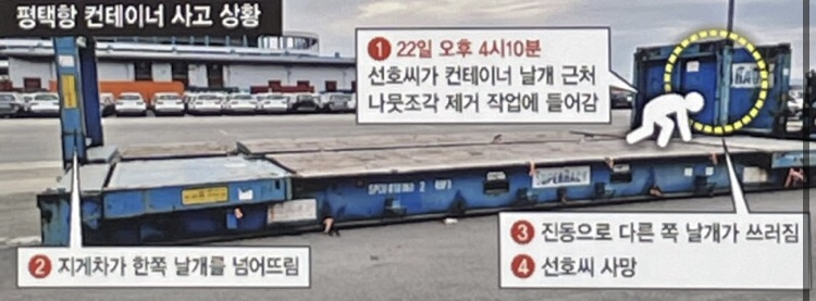 이선호 군은 원래 평택항의 컨테이너 터미널 운영을 맡은 업체가 다시 인력 위탁을 맡긴 인력업체 소속이었고 컨테이너 터미널 동식물 검역소에서 검역 대상 물품들을 운반하는 일을 했는데요.