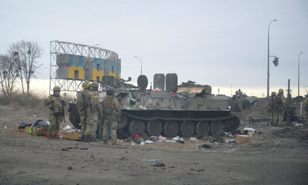 키예프에 추락한 비행기를 살펴보고 있는 우크라이나 군인들. 무슨 비행기이고 어떻게 추락했는지는 미상.