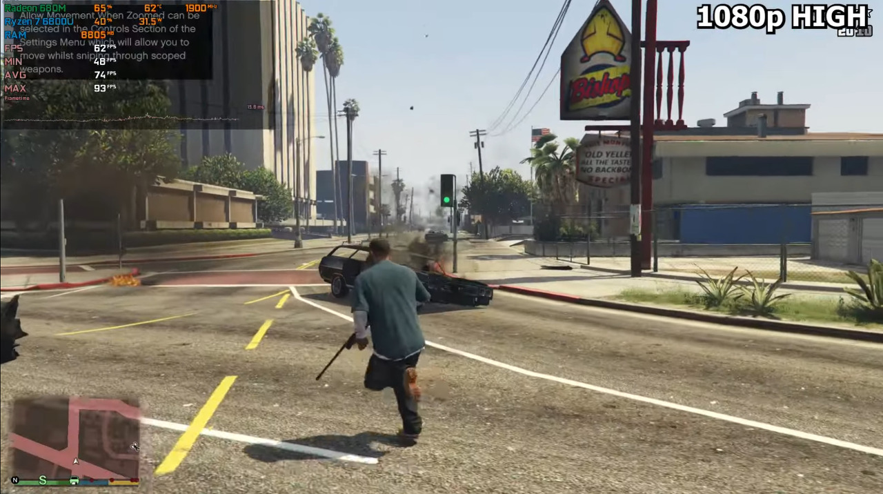 1080P에 높음 옵션에도 50FPS 넘음